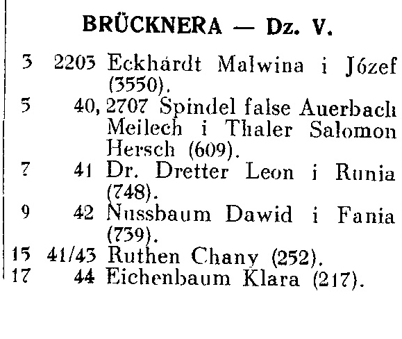 Лист подяки професора А.Брюкнера до мешканців Тернополя. У зв’язку з перейменуванням магістратом Тернополя вулиці Валової на вулицю Брюкнера, надійшов від нього лист, скерований до редакції «Еха Подільського», рукою М.Йориша переписаний: «За надзвичайну нагороду, якою обдарувало мене рідне місто, складаю вираз найвищої вдячності Богові та громаді до такого відзначення моєї особи стимулював. З самим містом мене нічого не зв’язує, бо родичі через рік після мого народження (1856р) переїхали назавжди до Львова, так що про Тернопіль сам нічого не знав, окрім запису костельного у метриці. Повторюю вислови глибокої вдячності. Підписується Ваш вірний слуга…» /…./ А.Брюкнер (№20 «Ехо Подільське» 22 серпня 1926 року) 25 листопада 1930 року пленум міської ради ухвалив назвати іменем проф.Людвіка Фінкля нову вулицю від входу вул.Косцюшка до вул.Єзуїтів… Магістрат також виконав ухвалу міської ради про перейменування вулиці Валової на вулицю А.Брюкнера. (№49 «Голос польський» 30 листопада 1930 року)