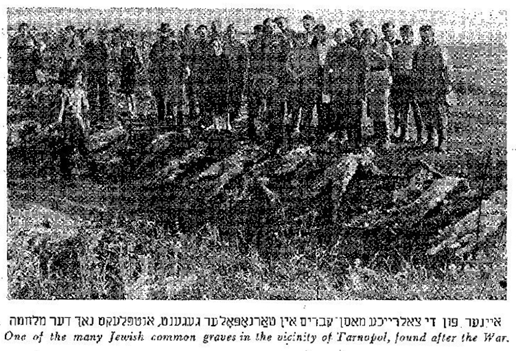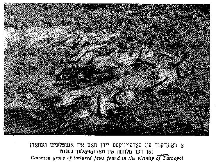 З нечуваною жорстокістю було знищено квітучий осередок євреїв у Тернополі, з котрого вийшли знавці Тори та справедливі мудреці. Місто, де його сини з гордістю несли прапор іудаїзму, перетворився на острів з руїною, з котрого було вирване життя , що розквітало тут багато поколінь.
