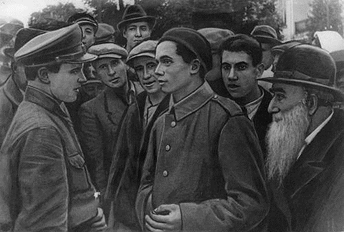 | Soviet lieutenant i, falkovich speaking with a jewish resident of ternopil, western ukraine, october 1939, the soviet army entered the village a month earlier. |