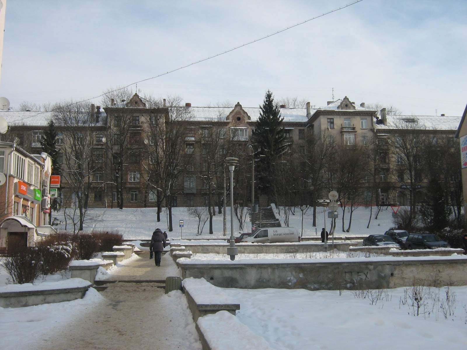 | ОСТРОЗЬКОГО,45 - ПЕРША ПОВОЄННА БАГАТОПОВЕРХІВКА, ЗВЕДЕНА В 1950-ИХ РР, НА МІСЦІ ЗРУЙНОВАНОГО ДАВНЬОГО ЄВРЕЙСЬКОГО КЛАДОВИЩА, ЗАСНОВАНОГО НА ПОЧАТКУ 17СТ |