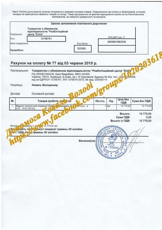 Перерахувати кошти на допомогу дитині можна на картковий рахунок батька хлопчика: ПриватБанк – 5168757328113834 (отримувач — Коваль Роман). Не будьте байдужими, адже біда може трапитись з кожним, а врятувати — лише людяність та милосердя.