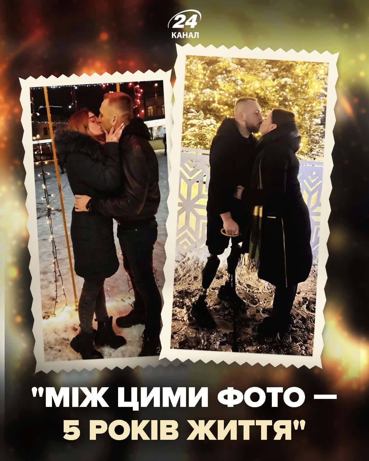 Захисник поділився щемкими фото в соцмережі. На них він з дружиною до та після його поранення.