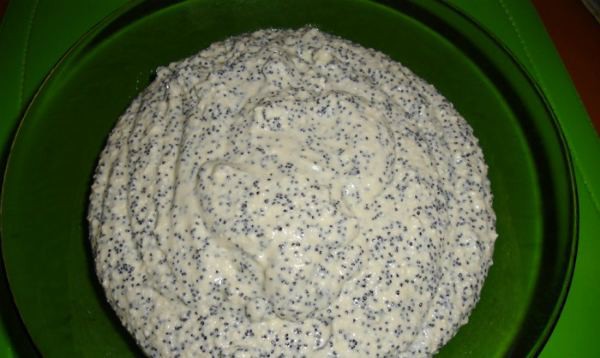 Провари мак на невеликому вогні 15 хвилин. Потім злий воду і просуши його. Змішай в блендері сир і 100 г цукру до однорідної маси. Потім додай в неї 2 яйця, 1 ст. л. крохмалю, мак.