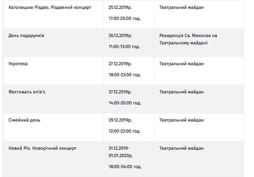 Файне зимове містечко 2020. Програма від 25 грудня