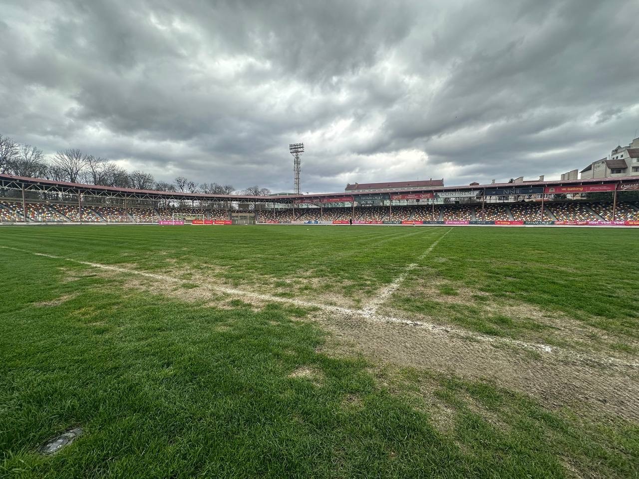 Комісія зафіксувала: газон стадіону у незадовільному стані. Витоптані та оголені ділянки, бур'яни, ущільнений ґрунт, відсутність будь-якого догляду. Біля воріт -болото. На момент передачі в оренду газон був у задовільному стані - це зафіксовано документально.
