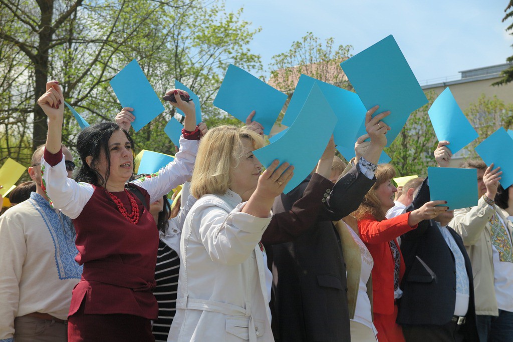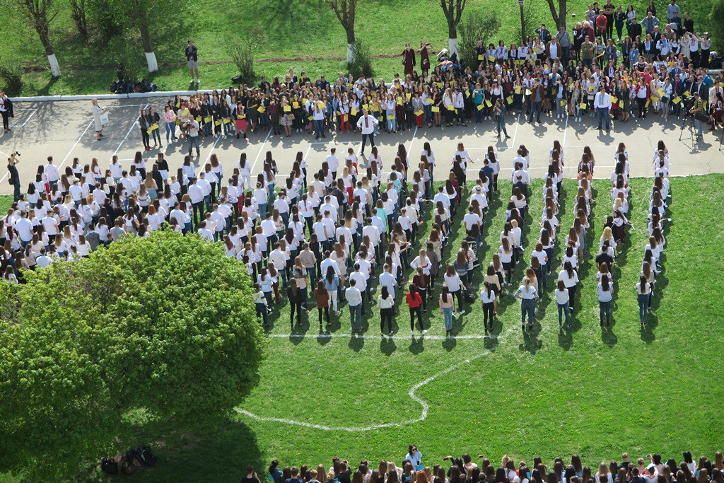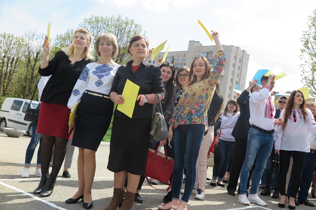 Під час дійства студентство з різних факультетів під святкову музику увійшло в середину масивної карти України, яку було заздалегідь намальовано на газоні поблизу пам’ятника Володимиру Гнатюку. Молодь рівномірно розташувалася на площині «України», підносячи вгору сині й жовті паперові квадрати та вимахуючи прапорцями із зображенням символіки заходу. А координував урочисте дійство ректор університету Богдан Буяк.