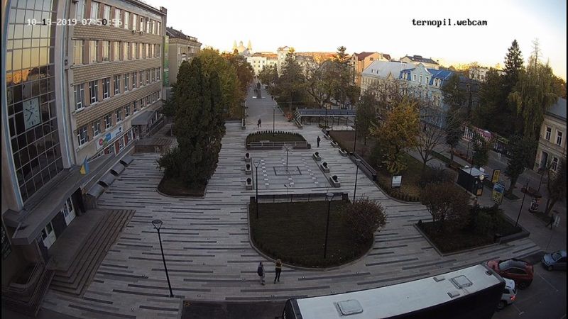 Як виглядає з висоти оновлена площа з фонтанами в центрі Тернополя