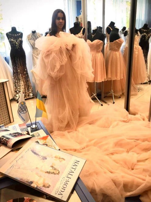 ТМ « НАТАЛІ- МОДА» шлейф виконала дівчині у подарунок, і пропозиція взяти участь у рекорді України стала для випускниці несподіваним сюрпризом.