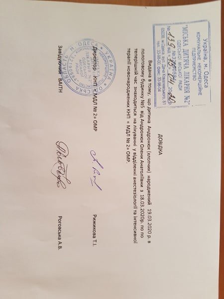 Карта Приватбанку (грн) 5168 7573 8916 0799 Андронюк Альона; контакти мами: 0672740114 (Альона); контакти батька: 0637463582 (Володимир);⠀контакти лікарні: Реанімаційне відділення м. Одеса, вул. Дача Ковалевського 81.⠀Коли немає репостів, надходження коштів припиняється. Сердечно вдячні усім, хто допоможе врятувати життя малекому Вячеславчику",- повідомляють волонтери.