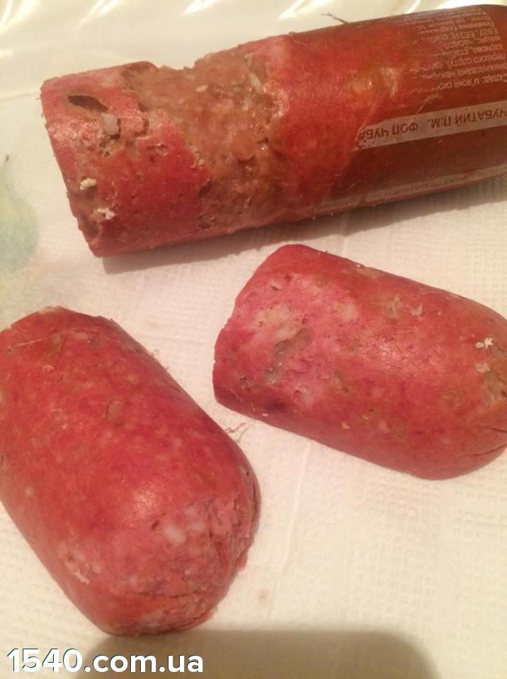 Шокуючі фото нам на редакцію надіслав тернополянин. Чоловік придбав ковбасу на тернопільському ринку, та поласувати покупкою так і не вдалося.
