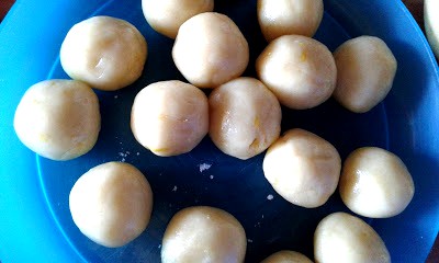Від тіста повідривайте маленькі шматочки і мокрими руками зробіть з них колобки (розміром, як грецькі горішки)