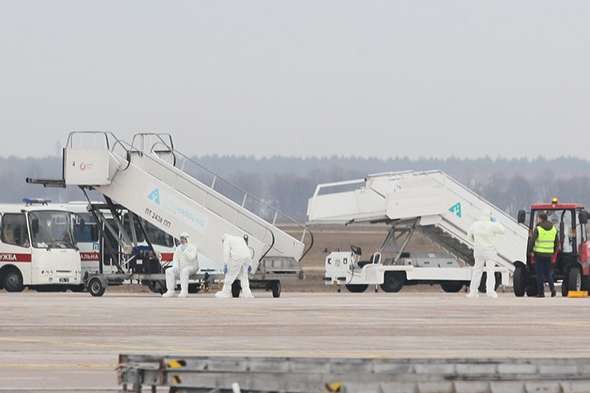 Літак вже приземлився в аеропорту Борисполя, де його зустріли медики і рятувальники.