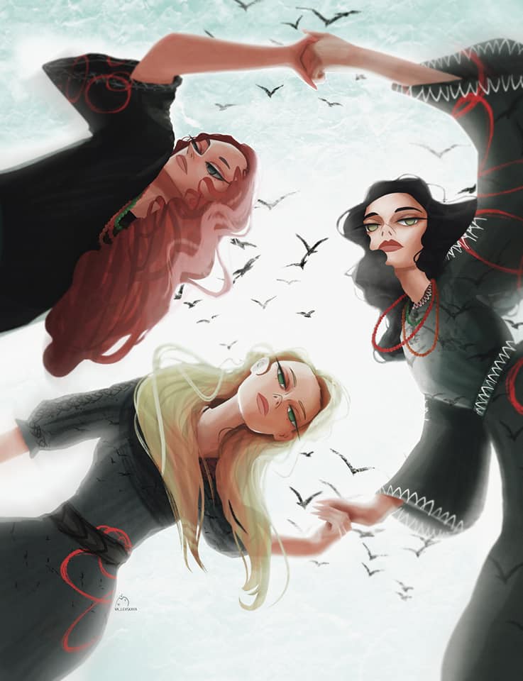 – Потрібно було вибрати тему для курсової і мені запропонували зробити щось про легенди Кременця. Мої очі загорілись і я відчула, що це воно! Думала над цим місяць, робила трішки ескізи, все було доволі звичайним спочатку. Дівочі скелі, скелі і три дівчини. Все, що було цікаво – емоції. Хотілось передати, що не так просто вибрати дорогу смерті. Але композиція зовсім не подобалась, тому я думала ще і дійшла до такої незвичайної ідеї, вже декілька людей подумали, що вони літають. З Ірвою це вже другий малюнок. Я експерементую завжди зі стилями і пробую все. Третя картина буде пов’язана з Мокосієвою, – розповіла «Терену» Ольга.