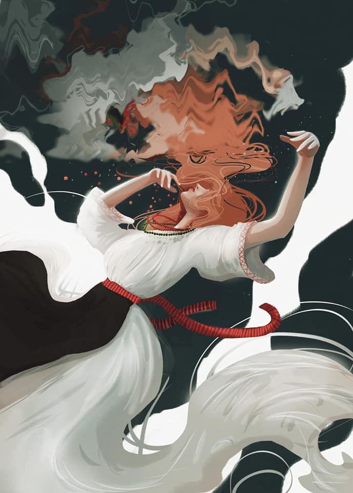 Ольга Сонце (Василевська) – студентка Кременецької ОГПА ім. Тараса Шевченка, уже стигла зобразити розповідь про Дівочі скелі та красуню Ірву. Зараз дівчина працює над третьою картиною. Розпочиналася її робота, як курсова.