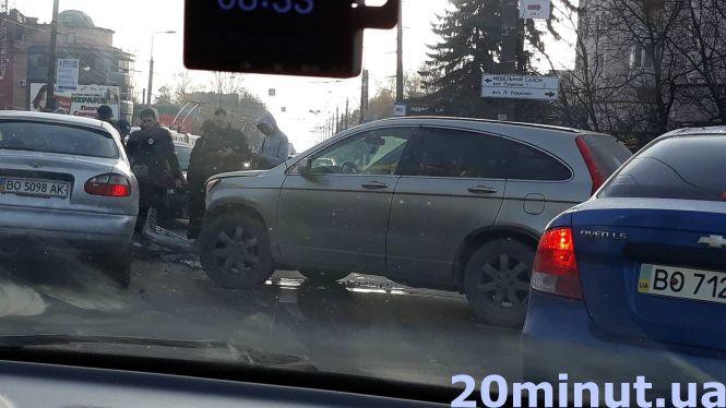 На Бандери - ДТП. На ділянці між «кінопрокатом» і костелом зіткнулись Daewoo і Honda, - розповіла читачка Наталія. – Daewoo серйозно потовчена. Тролейбуси стоять, опустивши «роги», весь транспорт зупинився – в обидва боки. Затор – аж до Збаразького кільця.