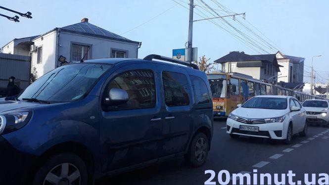 На Бандери зупинились і тролейбуси – на ділянці від стадіону до Збаразького кільця транспорт стоїть в обидва боки Кілька ДТП і обірвані дроти – добра частина Тернополя зупинилась зранку 12 листопада, пише 20 хвилин