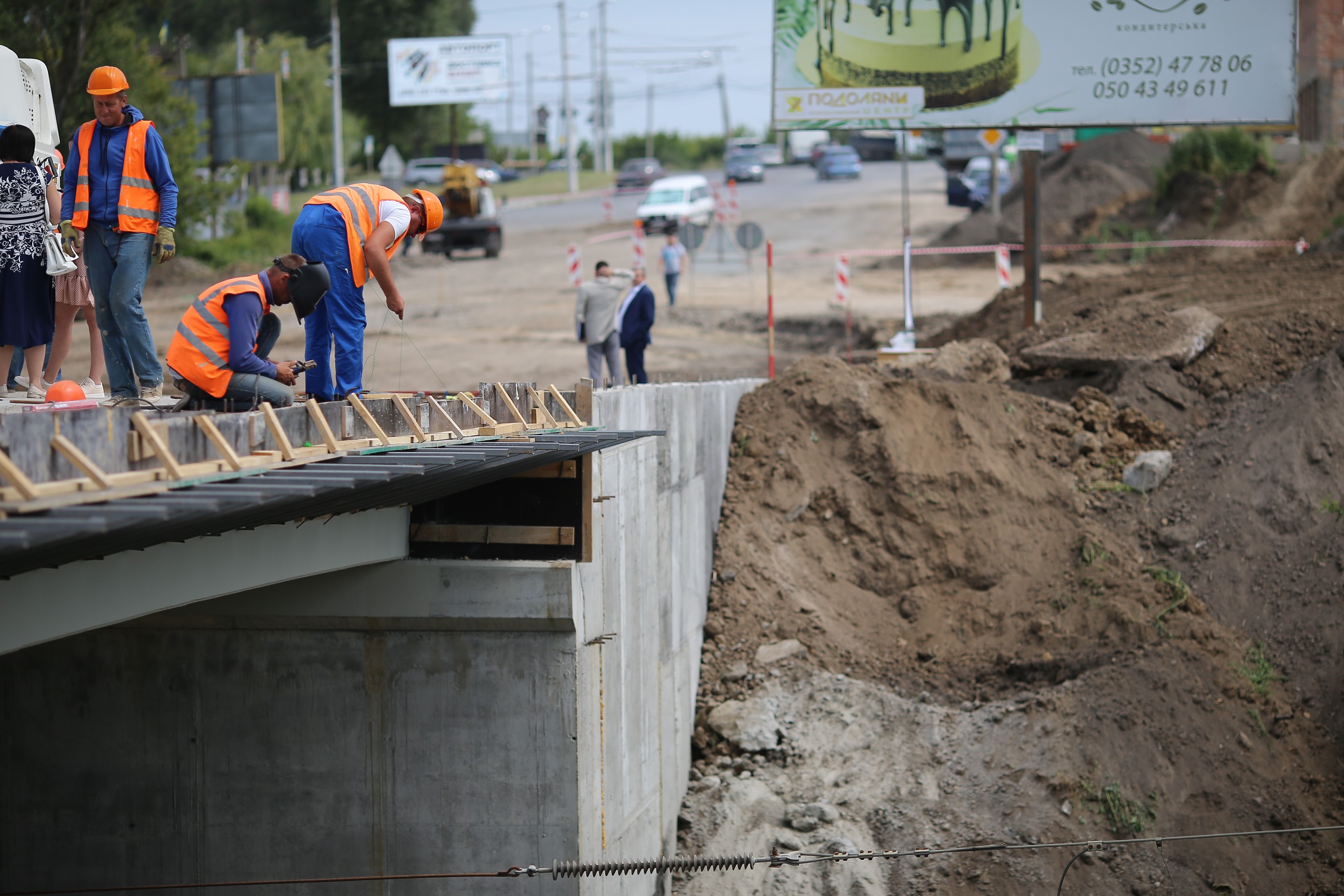 На даний час завершено влаштування підпірної стінки відкрилків мосту, де згодом встановлять бар’єрне огородження. Отож, бетонні роботи тут поетапно завершуються, ще залишилося влаштувати асфальтобетонне покриття.