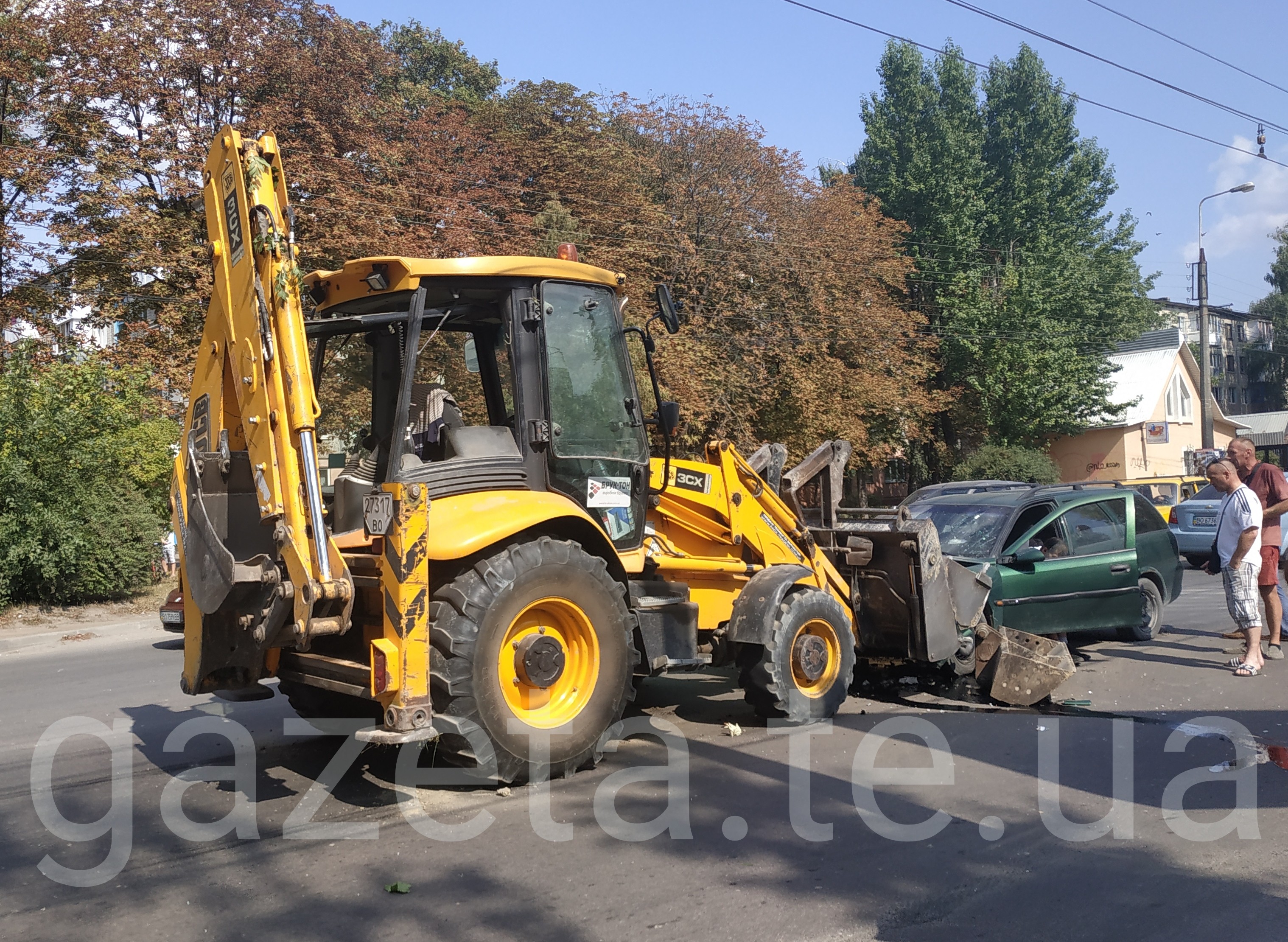 Сьогодні, 31 серпня, о 14:38 у Тернополі трапилася дорожньо-транспортна пригода. На вулиці Лесі Українки лоб в лоб зіткнулися екскаватор та Опель.