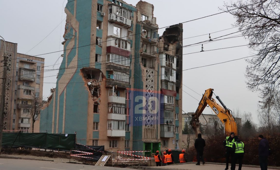 Територію навколо будинку загородили. Працює бригада зі спецтехнікою, які поступово розбирають стіни.