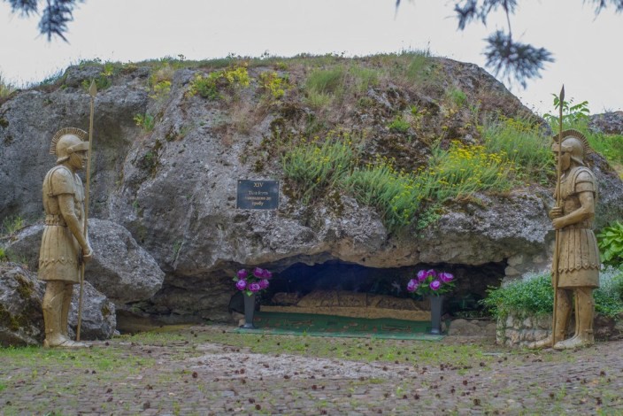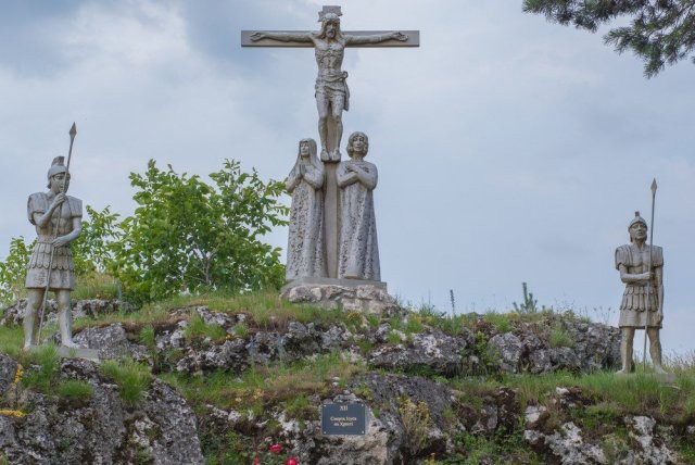 Зокрема, вздовж Хресної дороги встановлено 15 стацій, починаючи від моменту засудження Ісуса Христа до його воскресіння. Кожну стацію відображено у скульптурах, які розташовані на каменях і які чудово вписуються у тамтешній ландшафт. Що цікаво, то місцеві мешканці намагалися зробити все якомога природніше, адже не порушували нічого, що вже до них зробила природа. Навіть старалися не закривати бруківкою каміння, яке вже було закладено, коли робили доріжку.