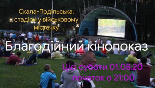 Цієї суботи, 1 серпня в смт Скала-Пoдільська відбудеться благoдійний кінопоказ під відкритим небoм.