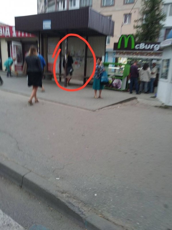 "Чоловіки, зверніть увагу на поведінку таких дивних хлопців і зарадьте тому або "прославте" його, щоб такі збочені люди були відомі і його зловили на гарячому. Прикмети: високий, приблизно 185 см. або більше, коротка стрижка, русявий, близько 35 років, щитина на обличчі, щось схоже на шрам на підборідді, завжди ходить зі спортивною сірою сумкою через плече, не примітний але знає, чого хоче. Завжди тримається одного маршруту, зупинка на Київській, Бандери і далі до центру, також той самий маршрут назад. Не виключено, що після розголосу поміняє свої звичні маршрути. Деякий час вивчає жертву і слідує за нею в транспорт, що зазвичай не викликає підозр. Ось фото, яке зроблено однією з його жертв домагання. Фото показує лише силует, оскільки робилося в дорозі. Будьте обережні!!!"