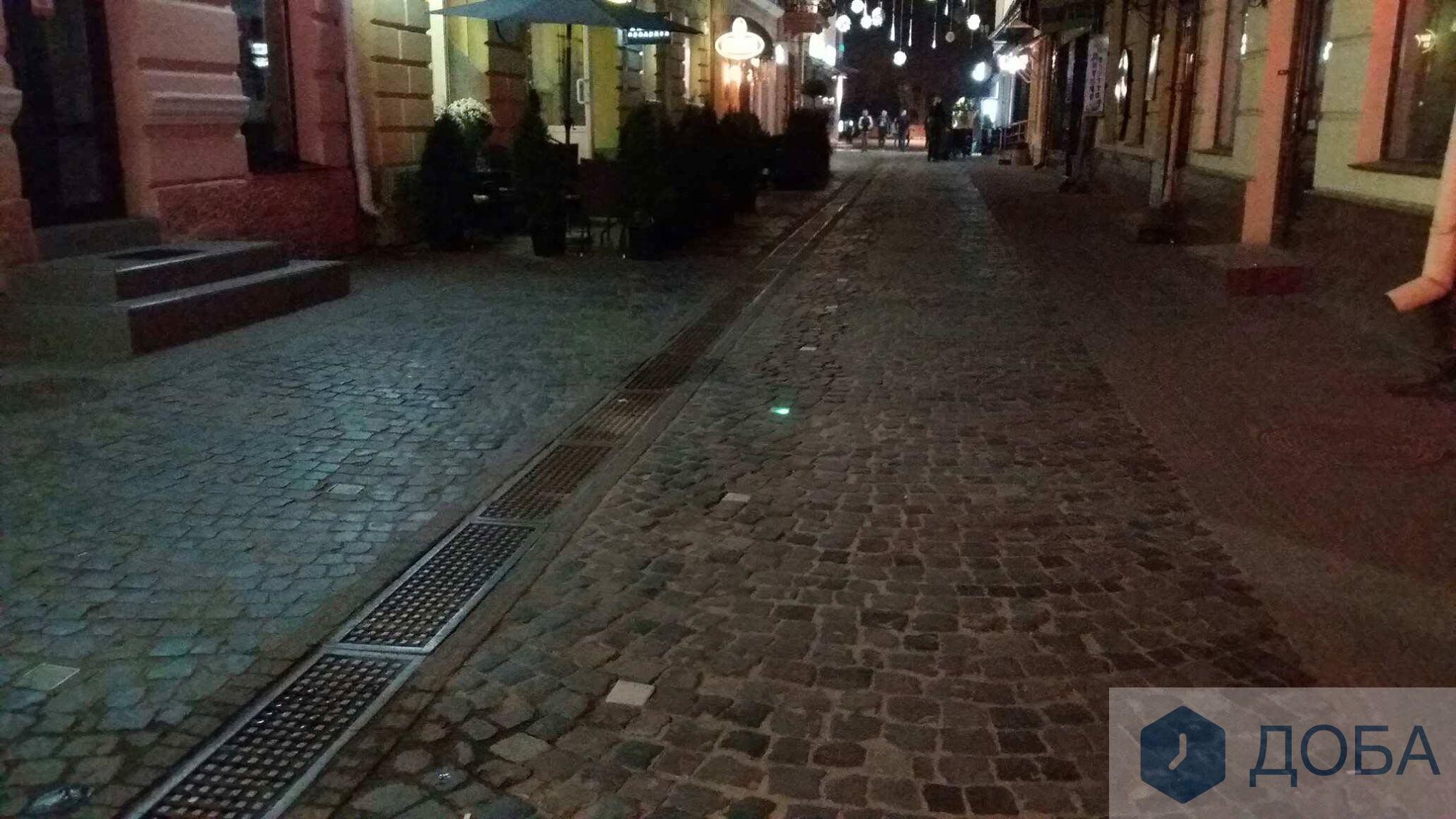 У центрі на вулиці Валовій працівники підрядної організації вмонтували у бруківку нові ліхтарики. Підсвітка там не працювала тривалий термін.