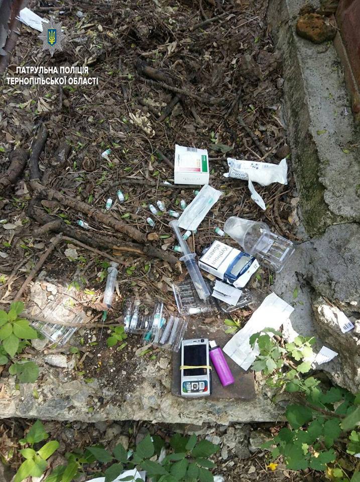 Патрульні виявили невідому особу на вказаному місці, довкола нього валялися шприци, з ймовірно наркотичними речовинами, та упаковки від ліків, що містять наркотичні речовини, передає Патрульна поліція Тернопільської області.