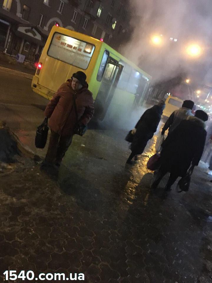 На зупинці у центрі Тернополя загорілась маршрутка. ФОТО