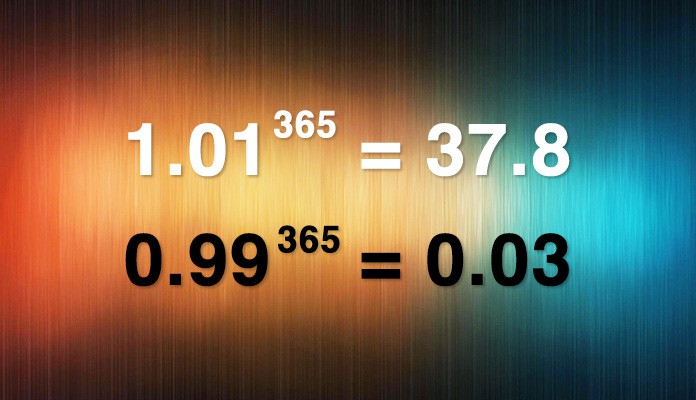 Якщо прийняти зусилля за одиницю і звести в ступінь 365 – кількість днів одного року, то результат виходить саме таким. Робіть трохи менше, ніж можете – і результат практично нульовий. Робіть трохи більше, ніж робите зазвичай – і результат збільшується багаторазово. З математикою не посперечаєшся. З життям теж.