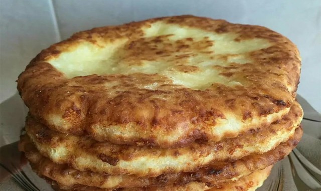 Тісто розділити на 5-6 частин, розкачати коржі і обсмажити на сковороді з олією, можна додати зелень.