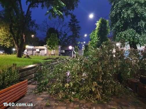 Негода наробила збитків і в самому центрі Тернополя. Так, шквальний вітер та грозу не пережила улюблена багатьма містянами райська яблуня на Чорновола.