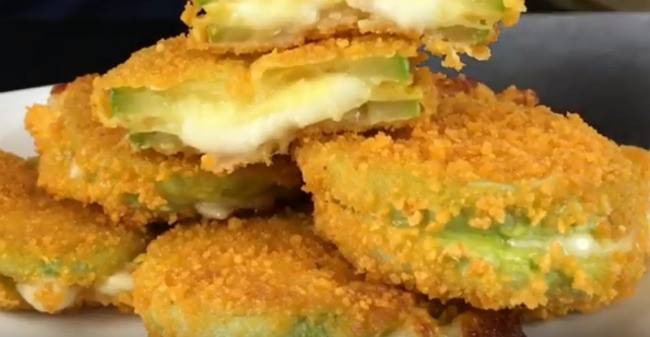 У сезон кабачків просто необхідно приготувати ось таку закуску. Вона виходить нереально смачнимт. Кабачки мають зверху хрустку скоринку, всередині залишаються м’якими, а начинка з тягучого сиру виходить просто чудовою.