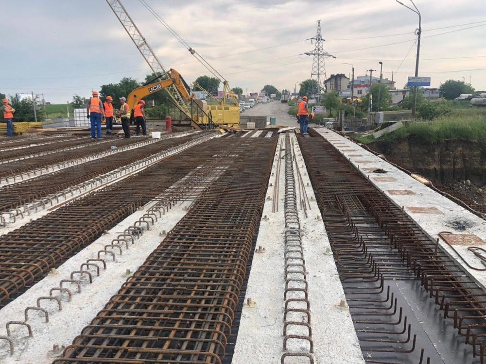 Будівництво транспортної розв’язки не припиняється й у вихідні та святкові дні, а зведення мосту заплановано завершити до 1 вересня