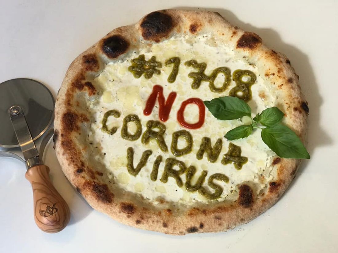 Цією піцою, працівники закладу наголошують, що сьогодні працюють більше на доставку, а також використовують тонни дезинфікуючих засобів у закладі, щоб не поширювати інфекцію.