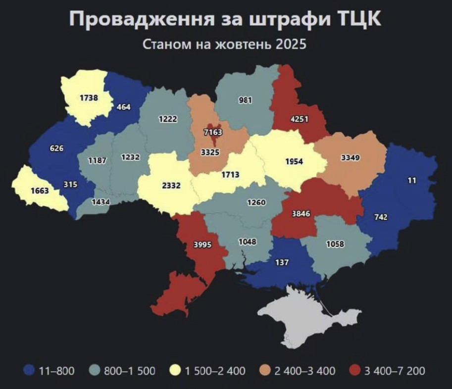 Сервіс Opendatabot веде статистику проваджень за штрафами ТЦК. Станом на жовтень 2025 року у Тернопільській області 1187 таких проваджень. Це більше, ніж у Львівській, але менше, ніж в Тернопільській області.