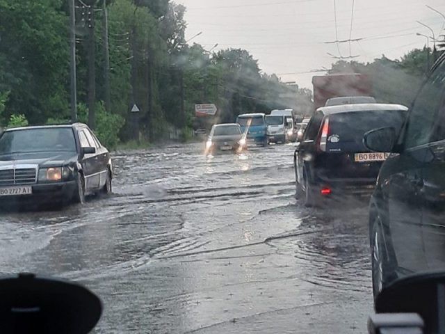 Кілька хвилин тому у Тернополі розпочалася злива, подекуди з градом.