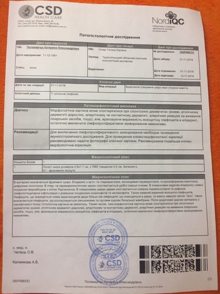 Катерина вже пройшла 30 фототерапій у столиці, які їй профінансувала держава, але, на жаль, лікування їй не допомогло. Не покращили стан хворої і дві сильніші хіміотерапії. Тепер жінці необхідно пройти іншу “хімію”. Вартість одної процедури сягає 115 тисяч гривень.
