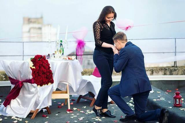 Коли Тетяна вийшла на дах будинку я, як за доброю традицією, став на одне коліно та попросив її руки. Вона сказала "так".