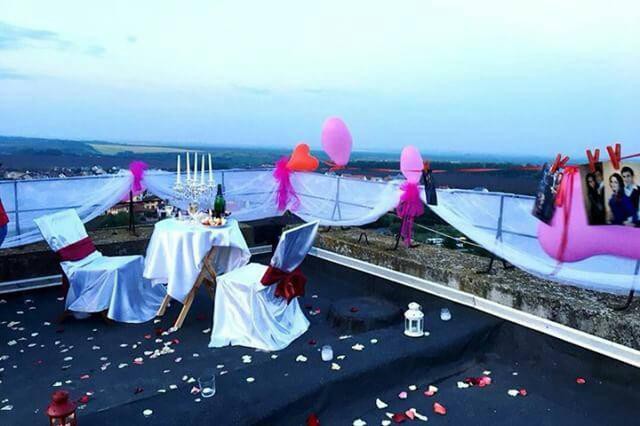 Перше, що ми зробили це попросили дозволу, щоб прикрасити дах будинку. Взяли ключі та оглянули місце освідчення. Потім замовили декор, який я знайшов в інтернеті. У той день було хмарно та навіть йшов дощ, але освідчення вдалося.