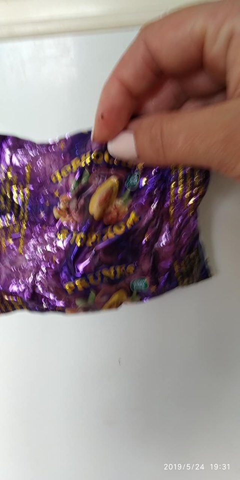 Купила сьогодні мої любимі цукерки і отримала такий сюрприз. Кому і ще такий попався? — запитала жінка.