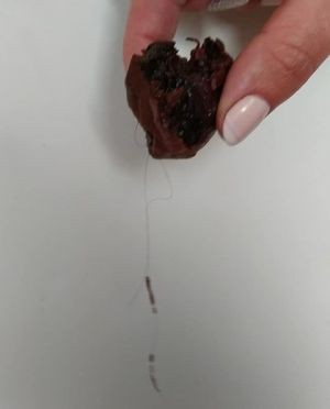 У ласощі «Чорнослив у шоколаді» Yulya Shalay виявила додаткову начинку – довгий волосок. Жінка поцікавилася, чи інші містяни не знаходили подібних сюрпризів у солодощах.
