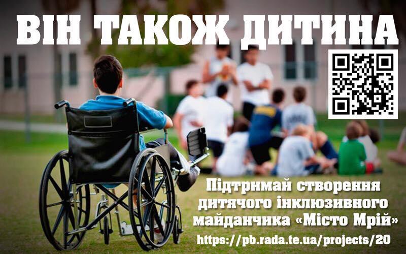 Проголосувати за проект Ірини "Дитячий інклюзивний майданчик "Місто мрій" у парку Відродження можна за ось цим посиланням https://pb.rada.te.ua/projects/20