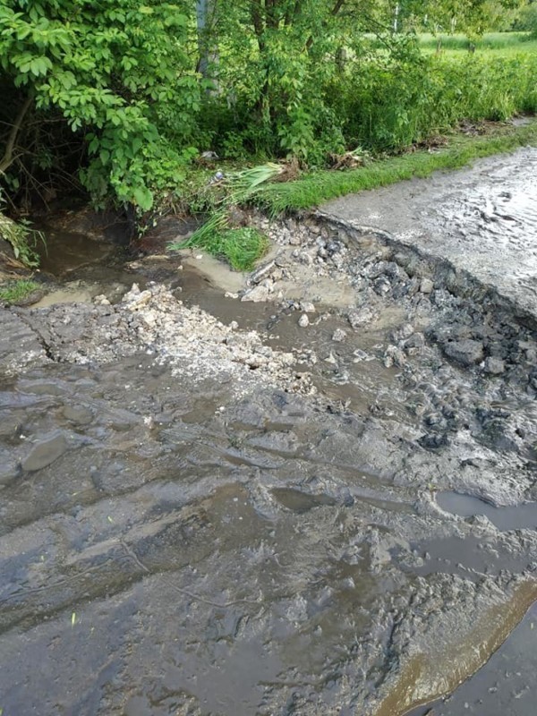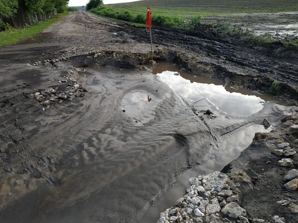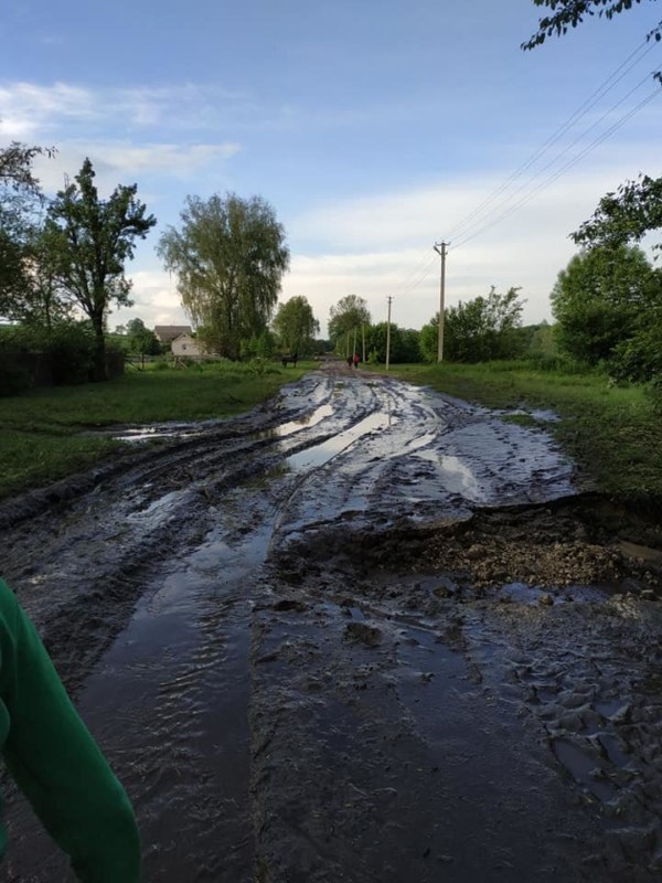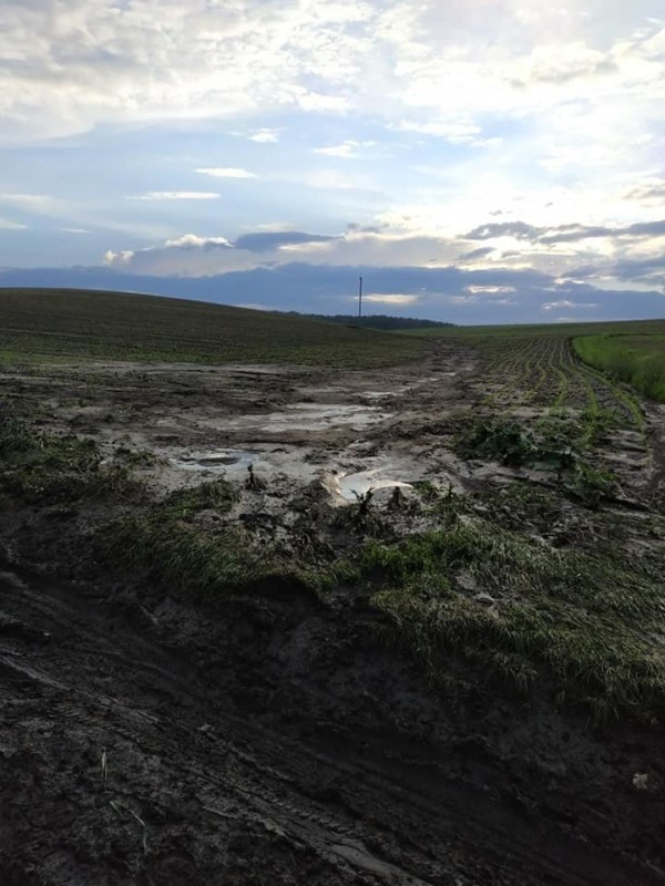 На фото можна чітку роздивитися наслідки “ігрищ стихії”: поля фермерів перетворені у жахливе болото, як і дорога, в якій тепер неможливо не загрузунути.