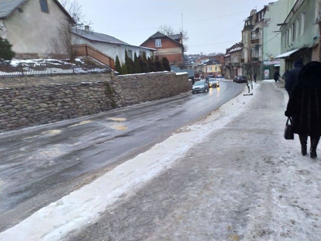 "Сьогодні на дорогах Бучача сильна ожеледь - накрапає дрібний дощ і моментально замерзає на холодній землі. Тому будьте максимально обережні під час дорожнього руху. Затор на спуску по вул. С. Бандери., "каток" по вул. Галицькій", - написав Анатолій Дубина.