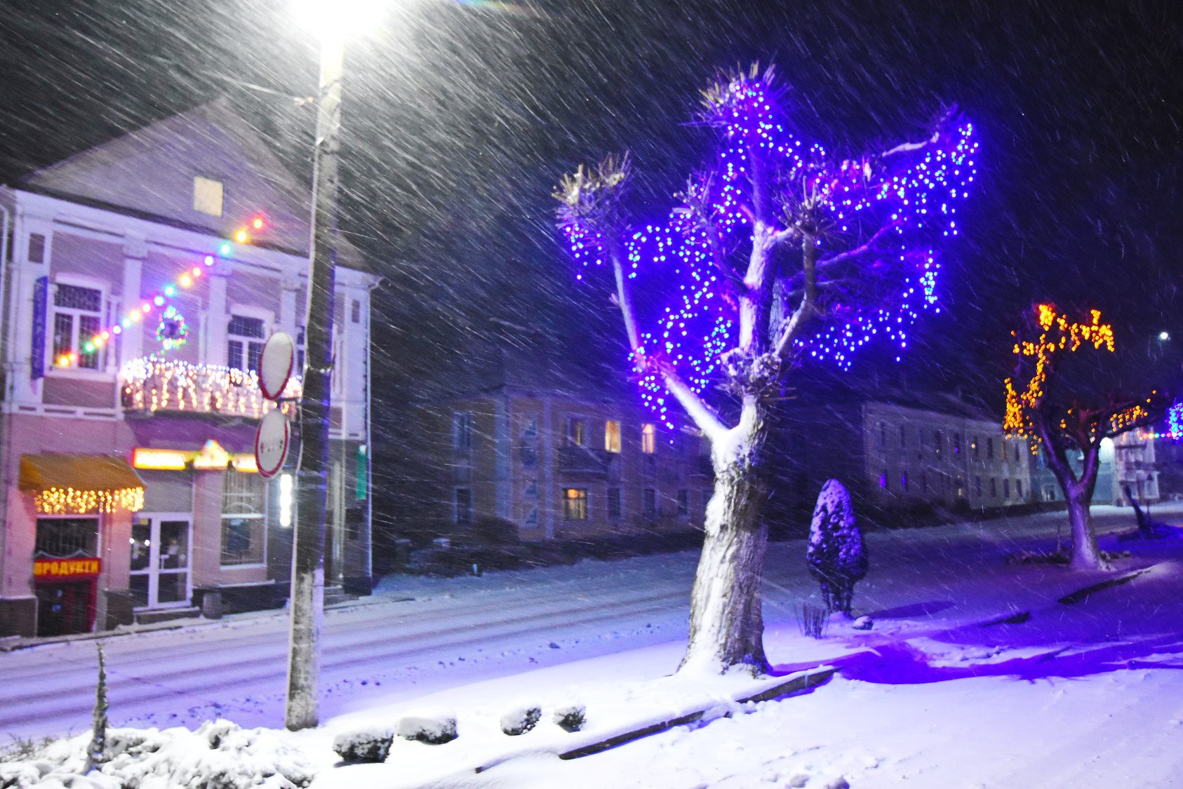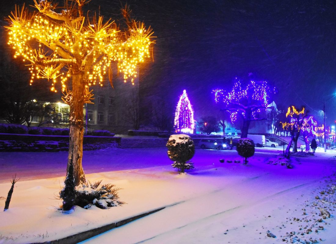 Вулиці міста засяяли яскравою ілюмінацією. Гірляндами прикрасили дерева.