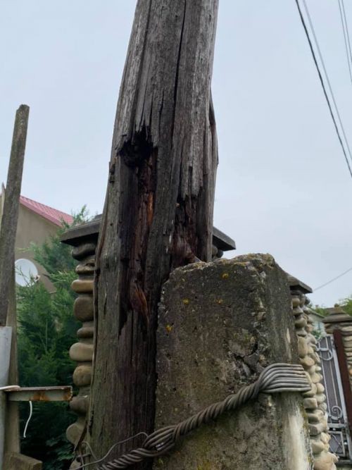 У групі в Фейсбук жителі міста Почаїв пишуть про аварійний дерев'яний стовп, що належить компанії "Укртелеком".