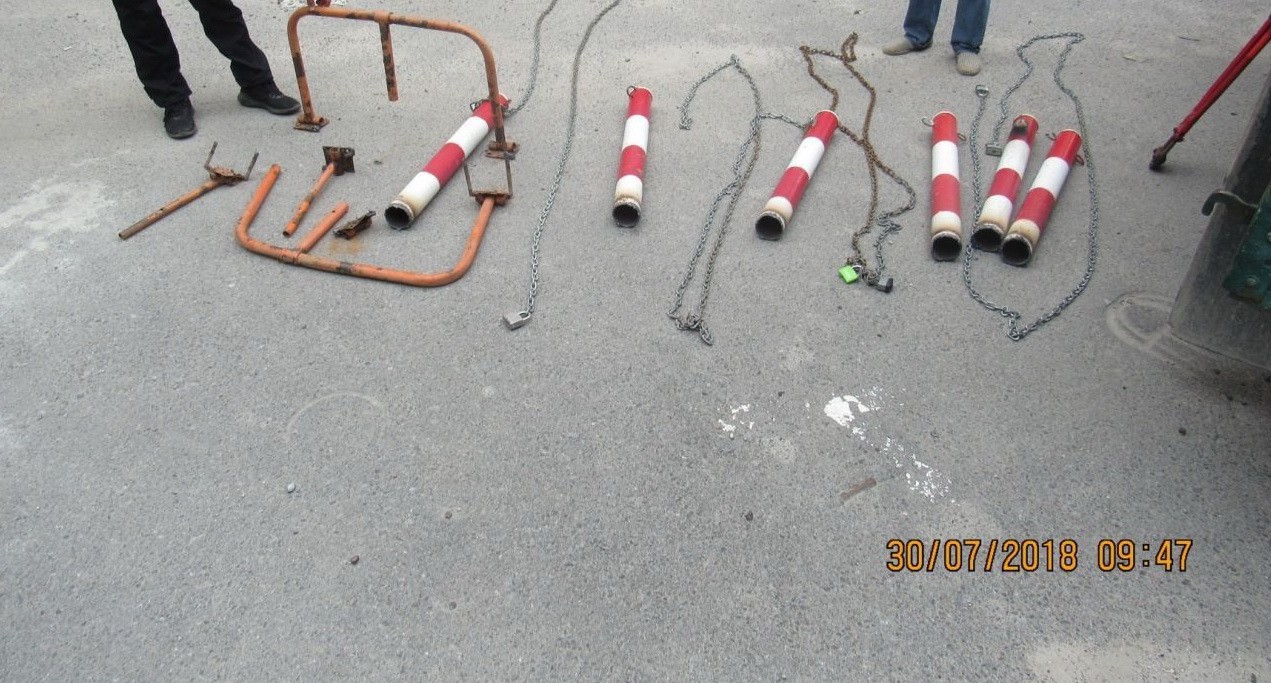30 липня постійно діючою робочою групою організації проведення демонтажів тимчасових споруд, які влаштовані на земельних ділянках комунальної власності без документів, що посвідчують право користування землею, демонтовано обмежувачі руху за адресою вул. Січинського, 4 (біля закладу громадського харчування «Мюнхаузен») у Тернополі.