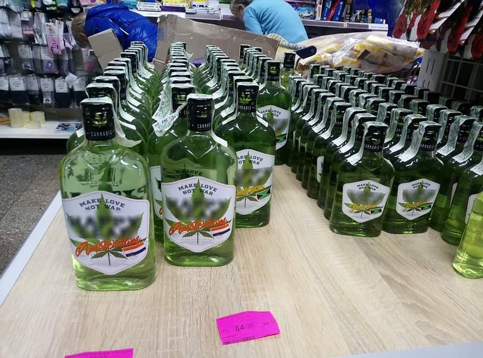 Такий напій вона побачила у магазині “Продлюкс” на вул. Київській. На пляшці зображений листок конопель, а на корку великими літерами написано Сannabis. Психолог вбачає у цьому рекламу наркотичного засобу, що небезпечно для молоді. Адже на корку вказана конкретна назва наркотика.