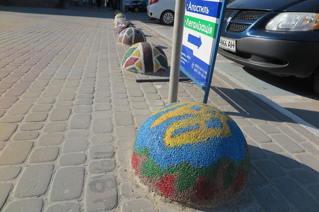 У Тернополі великодніми символами розмалювали навіть обмежувачі руху